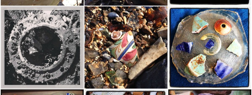 pottery shards, beached sea-glass,