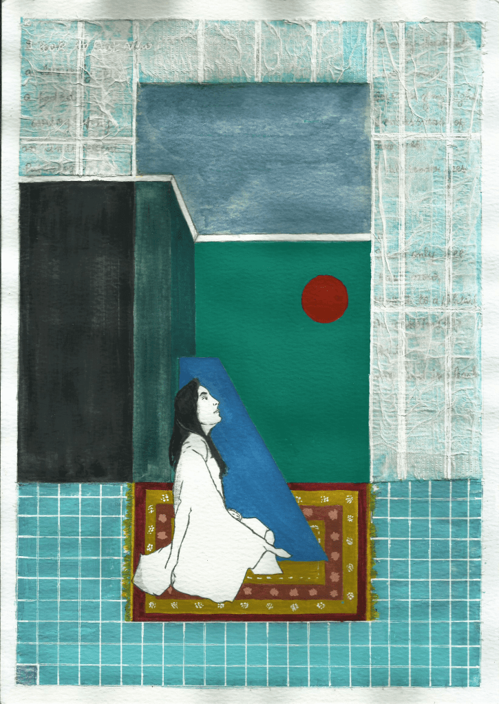 From an iconoclastic understanding of self-portraiture to a more distant research based miniature style, I have built my studio which produces self-sustained works. My Images are still within the spaces of self-stories (fan fiction), addressing the environment itself that they surround. I find that self is in itself a mythical character. A formation of multitudes, different collection of consciousness and sensations that are put together into an idea of unified self, which in itself is a lie. This particular work, based on poem I wrote, represents love, loss, and politics across borders.